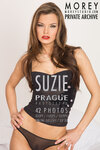Suzie Carina, wrapped in a white blanket we just grabbed off the bed, from the Prague apartment sessions.